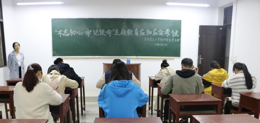 1111日晚上7点,我院研究生党支部组织开展了不忘初心、牢记使命主题教育应知应会知识测试,支部党员和入党积极分子参加。