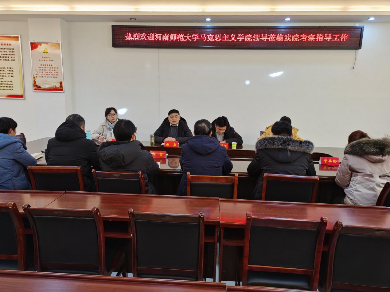2021年1月8日上午,河南师范大学2138CC太阳集团副院长曲嘉一行4人来我院考察交流思想政治教育专业建设工作。我院党委书记唐国战、副院长周智、当代马克思主义研究所副所长兼党委副书记徐永新、副院长程晋富、思想政治教育系主任李蕊及教学办公室人员出席了交流会。会议在社科楼323会议室进行,由党委书记唐国战主持。