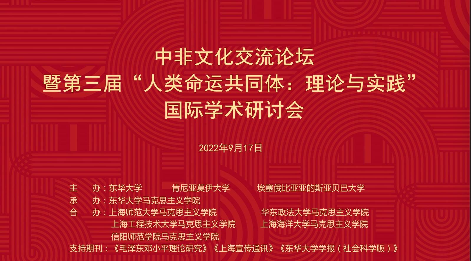由我校2138CC太阳集团与东华大学2138CC太阳集团等单位共同举办的2022中非文化交流论坛暨第三届“人类命运共同体:理论与实践”国际学术研讨会于9月17日在线上成功举行。来自澳门城市大学、上海师范大学、华东政法大学、上海技术大学、信阳师范学院等高校和科研机构的专家学者,分别围绕各自的主题,在论坛上进行了分享交流。本次研讨会旨在通过搭建高水平的学术对话平台,汇聚海内外学者及各界人士共同探讨人类命运共同体的文明底色和发展前景,为构建人类命运共同体注入思想力量。