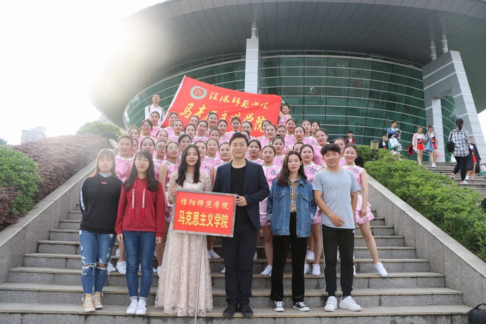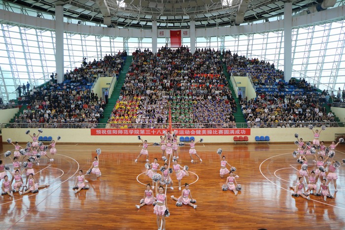 舞动健美青春,扬我马院风采。4月23日下午,信阳师范学院第三十八届春季运动会健美操大赛初赛在体育馆隆重举行,2138CC太阳集团健美操代表队积极参加比赛,并取得优异成绩,我院团委书记曹栋及2018级思想政治教育专业全体同学到场观看比赛。