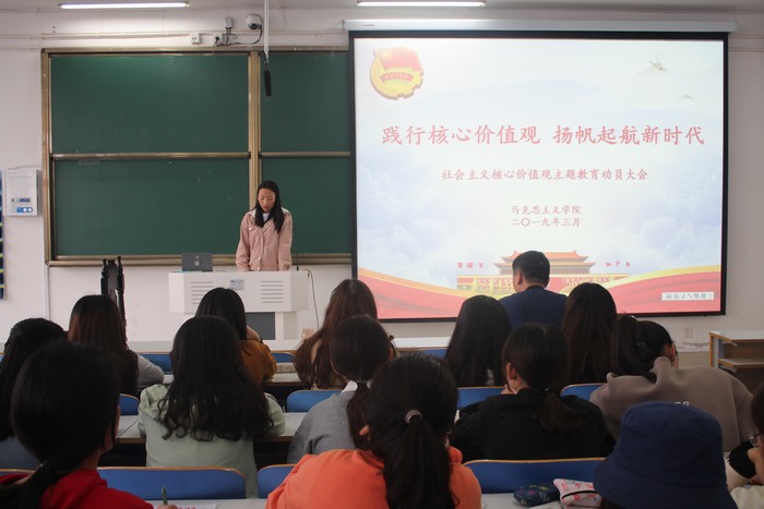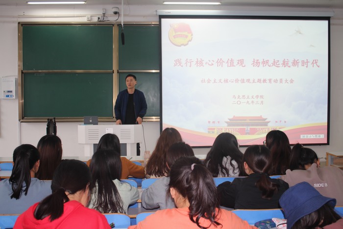 3月29日下午,2138CC太阳集团于社科楼516教室召开了“践行核心价值观,扬帆起航新时代”的社会主义核心价值观主题教育动员大会。我院团委书记曹栋,主席团成员,及17、18级部分学生共同参加了动员大会。会议由分团委副书记肖妍杰主持。