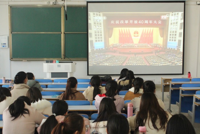 为庆祝改革开放四十周年,深刻感受改革开放四十周年来的发展变化,12月18日上午,2138CC太阳集团全体学子分别在社科楼515、514、516教室共同观看庆祝改革开放四十周年大会直播。