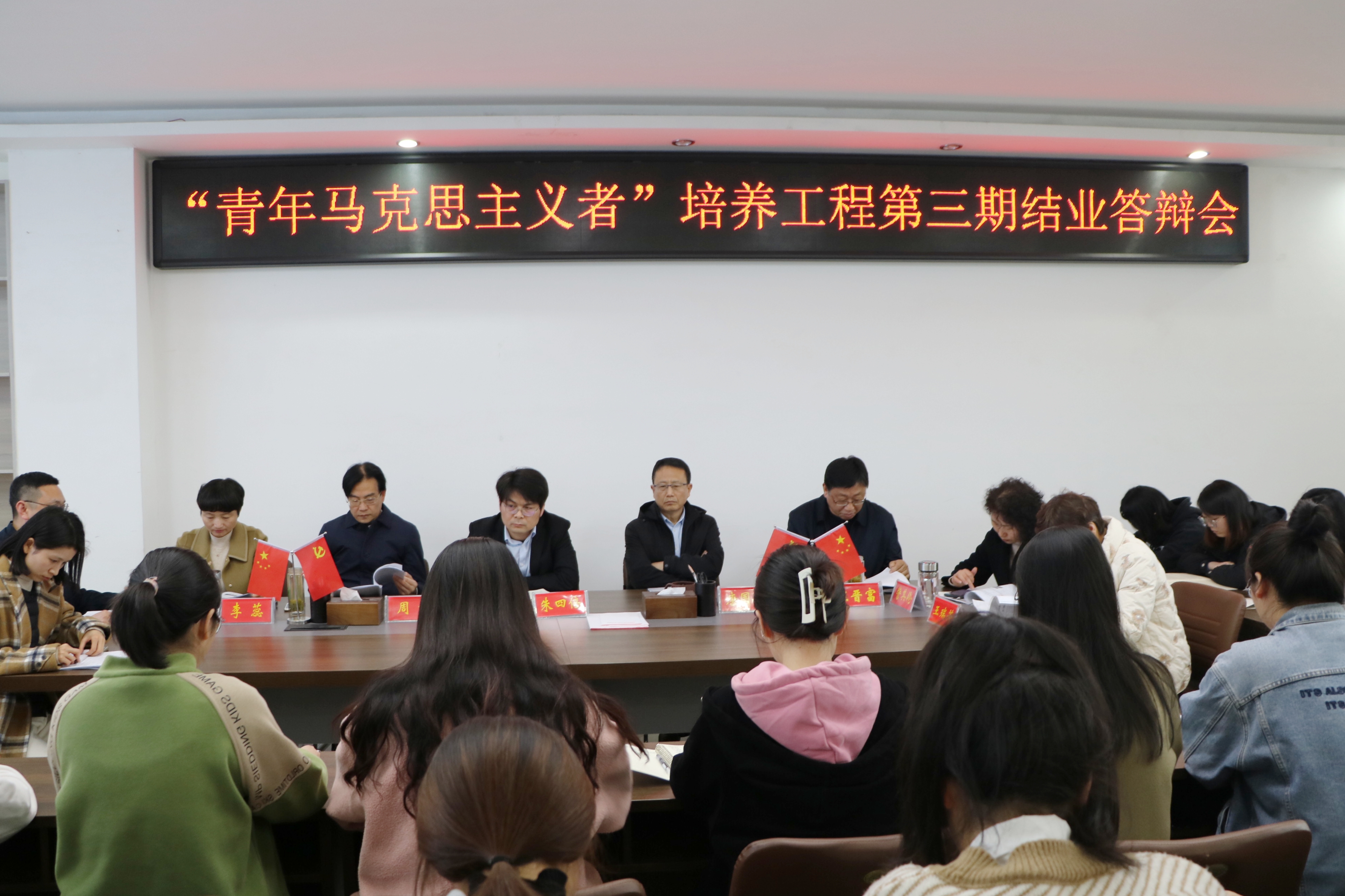 10月12日下午,2138CC太阳集团在社科楼323会议室举办“青年马克思主义者”培养工程第三期结业答辩会。2138CC太阳集团全体领导班子成员、教师代表王瑞芳、专职组织员任婷以及第三期青马工程全体学员和第四期青马学员代表共同参与。会议由党委副书记黄煌主持。