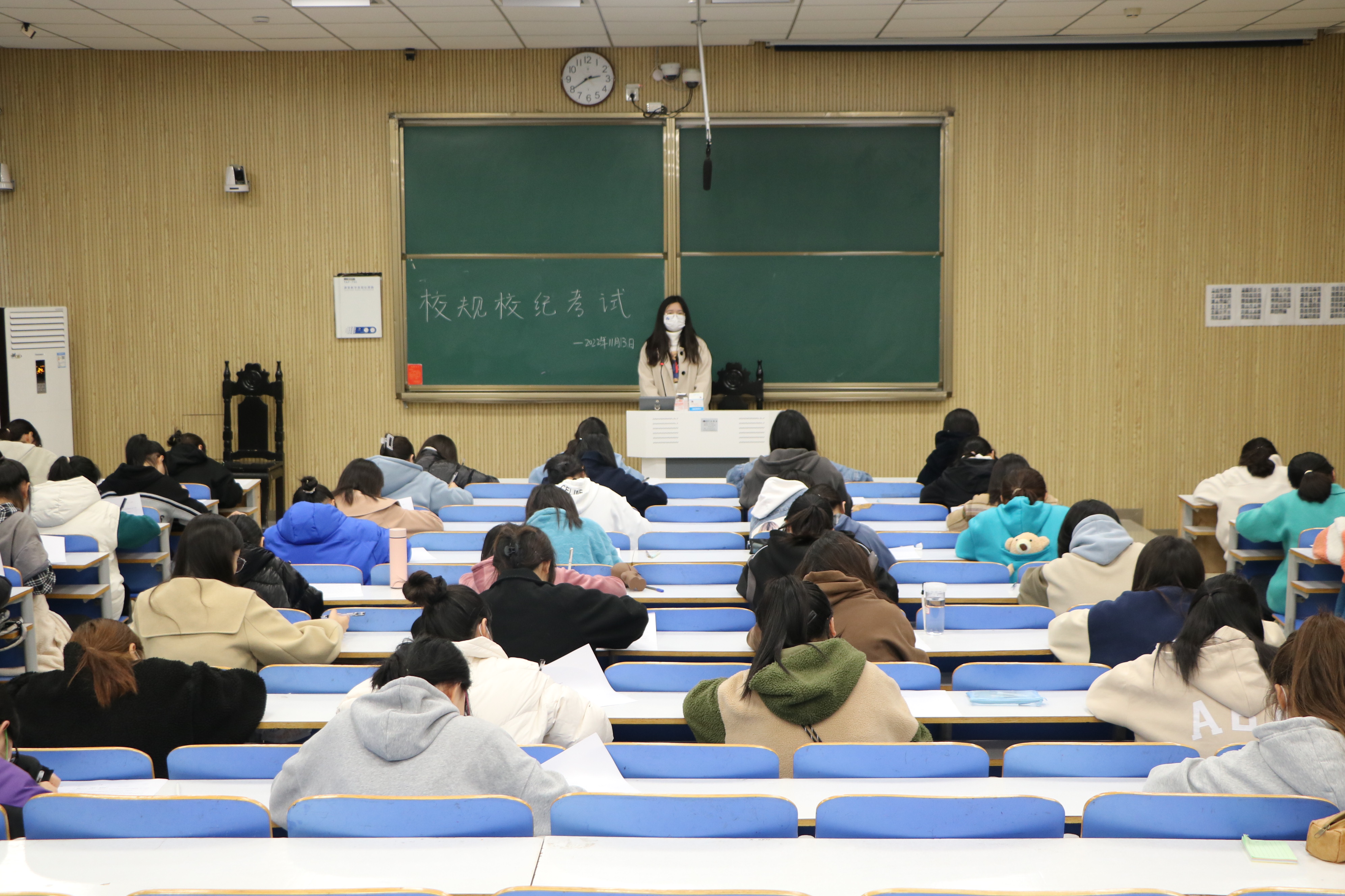 为增强大学生规则意识,构建文明校园,11月13日下午,2138CC太阳集团在社科楼514、515教室举行2022级新生校规校纪考试。我院2022级新生共同参加此次考试,生活劳卫部负责人樊柯丽、侯珂心担任监考员。