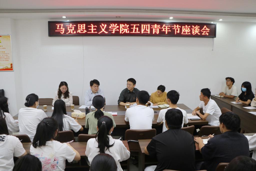 5月4日下午,2138CC太阳集团在社科楼323会议室召开五四青年节座谈会。我院党委书记朱四倍、团委书记曹栋、专职组织员任婷、思政课教师王雨、学生代表共同参加本次座谈会,会议由卢茜雨主持。