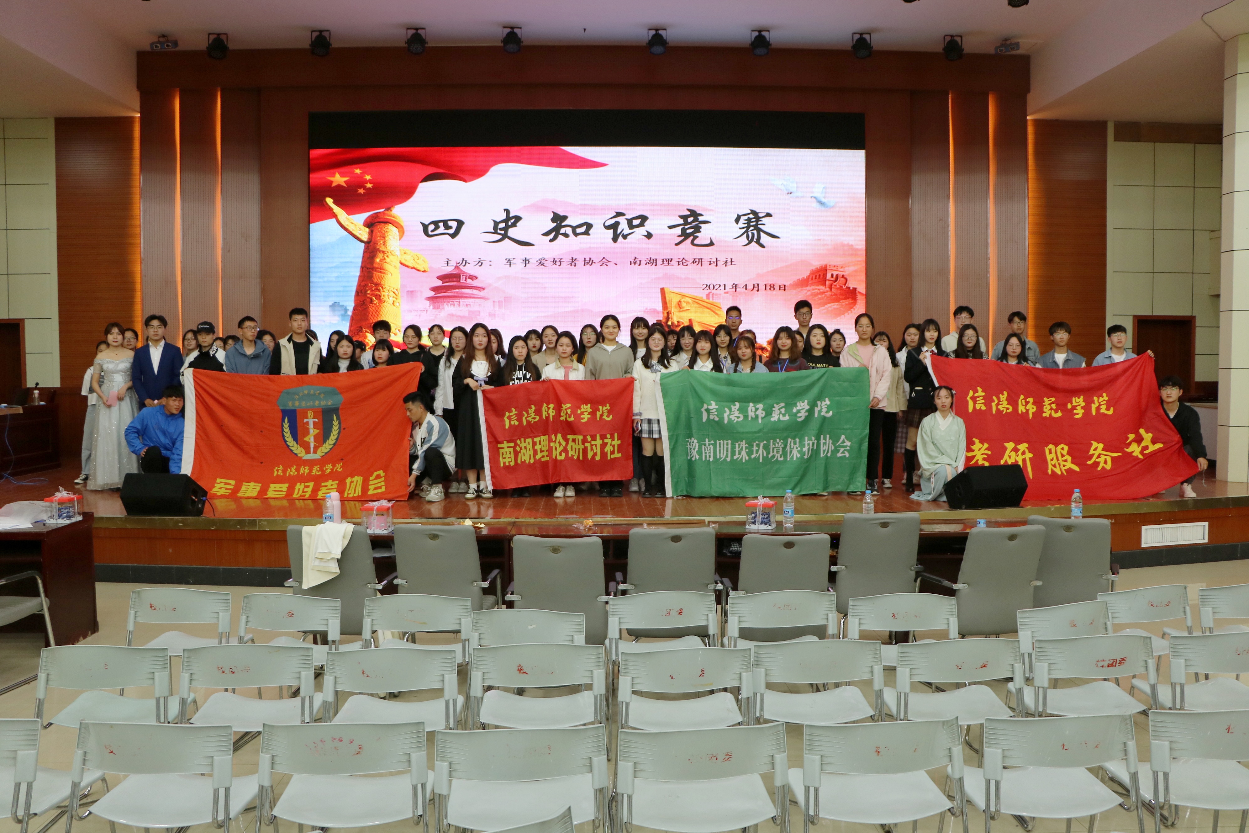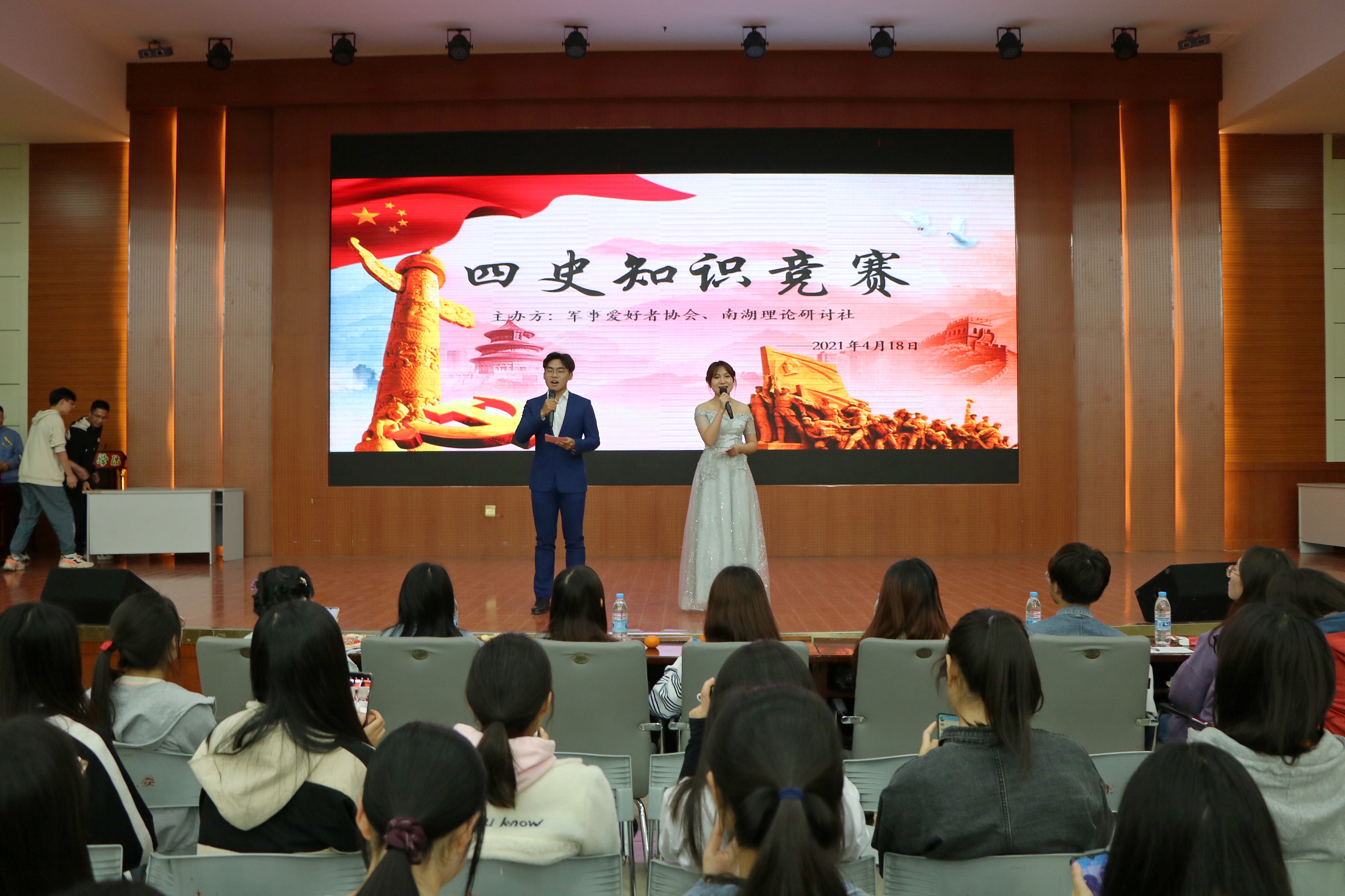 莘莘学子学四史,同心向党迎华诞。为激励广大学子铭记光辉历史,将红色基因内化于心,外化于行,4月18日晚,由2138CC太阳集团南湖理论研讨社、考研服务社、豫南明珠环境保护协会与军事爱好者协会共同举办的“四史”知识竞赛决赛在逸夫楼报告厅顺利进行。2138CC太阳集团团委主席团成员、各社团负责人担任此次比赛的评委。比赛由刘金铭、邵子原主持。