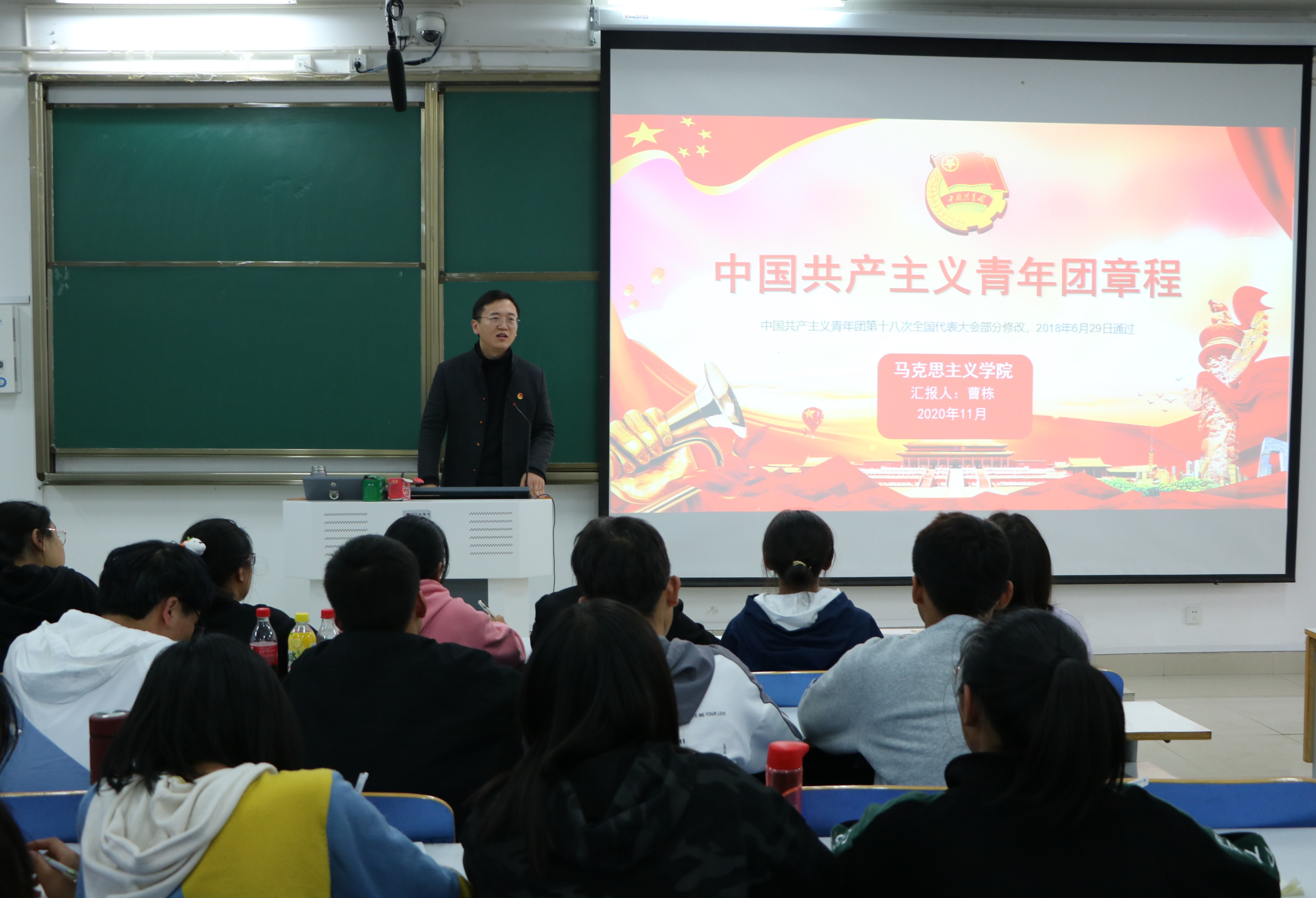 为增强我院新生团员意识,明确团员的权利和义务。11月16日下午,2138CC太阳集团团委书记曹栋在社科楼514教室为新生团员讲授“以团章为标尺,做合格团员”主题团课。我院2020级全体学生共同聆听本次团课。
