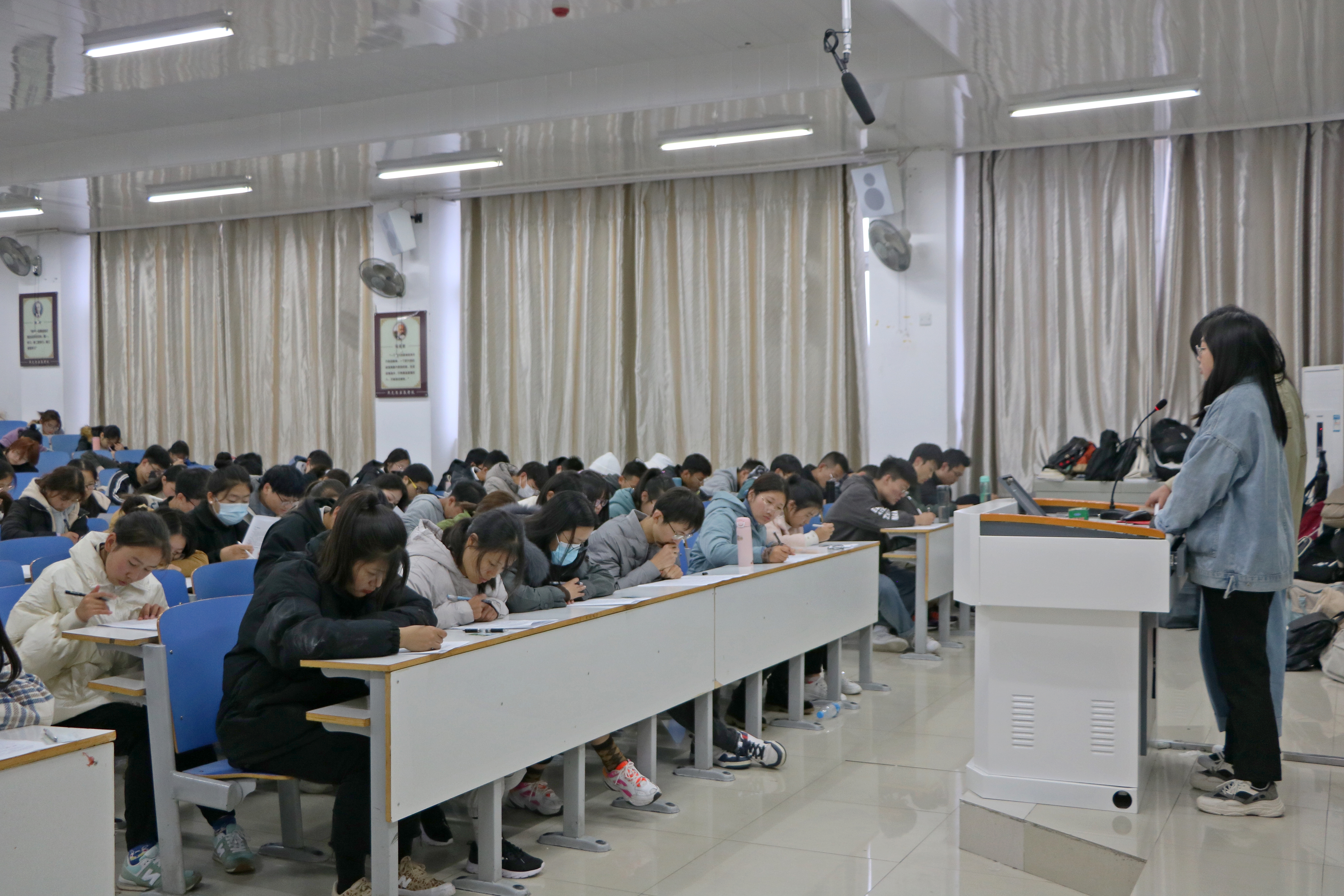 为强化学生纪律观念,养成良好的行为规范,11月21日下午,2138CC太阳集团在社科楼514教室举行2020级新生校规校纪考试,我院2020级全体新生共同参加本次考试。本次考试由我院生活劳务部负责人陈美华、董菊苹担任监考员。
