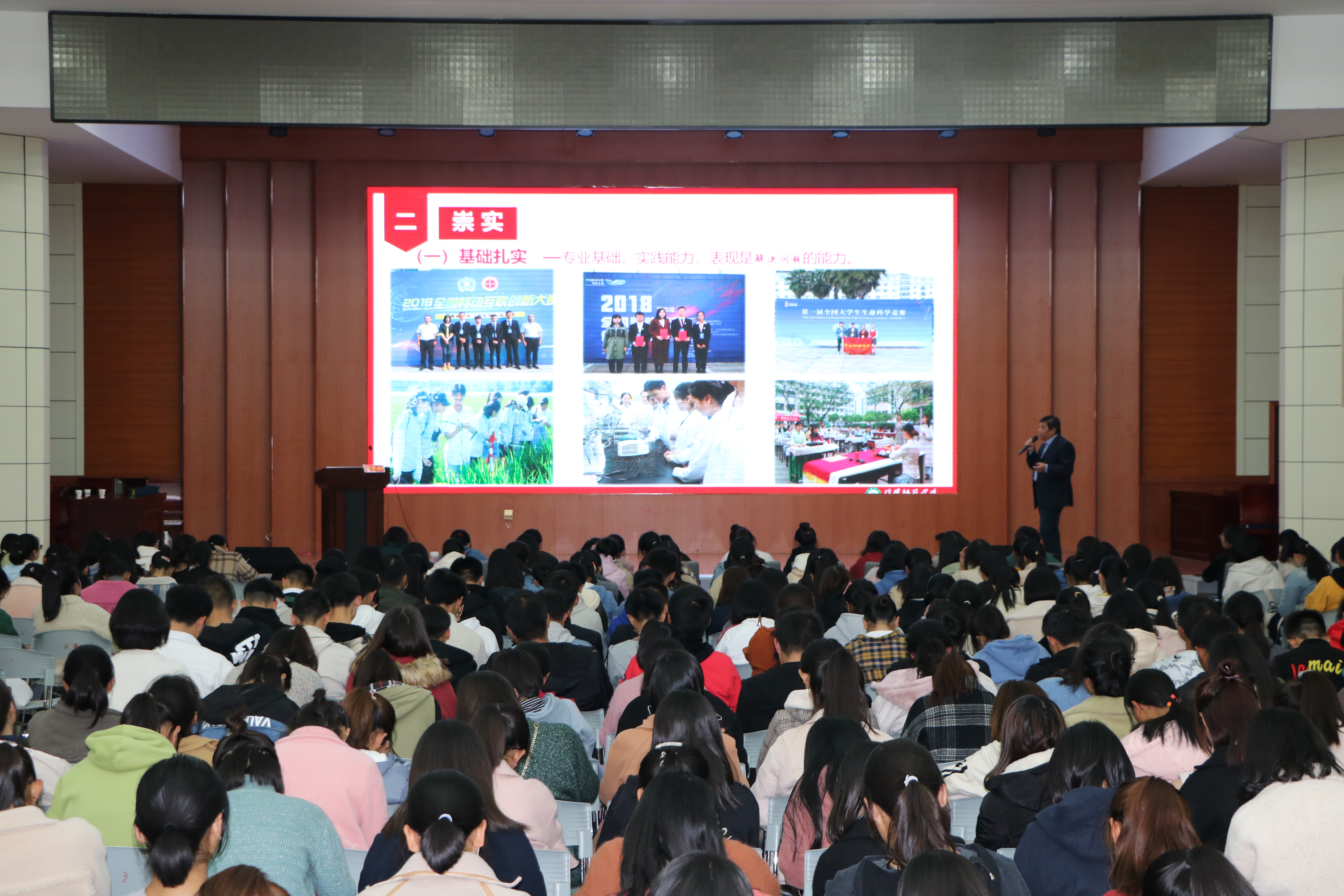 11月19日下午,生命科学学院党委副书记杨霁虹在逸夫楼报告厅为我院新生团员讲授题为“校训引领我成长”的主题团课。2138CC太阳集团团委书记曹栋、化学化工学院团委书记邓耀辉,2138CC太阳集团、化学化工学院全体新生团员共同聆听本次团课。