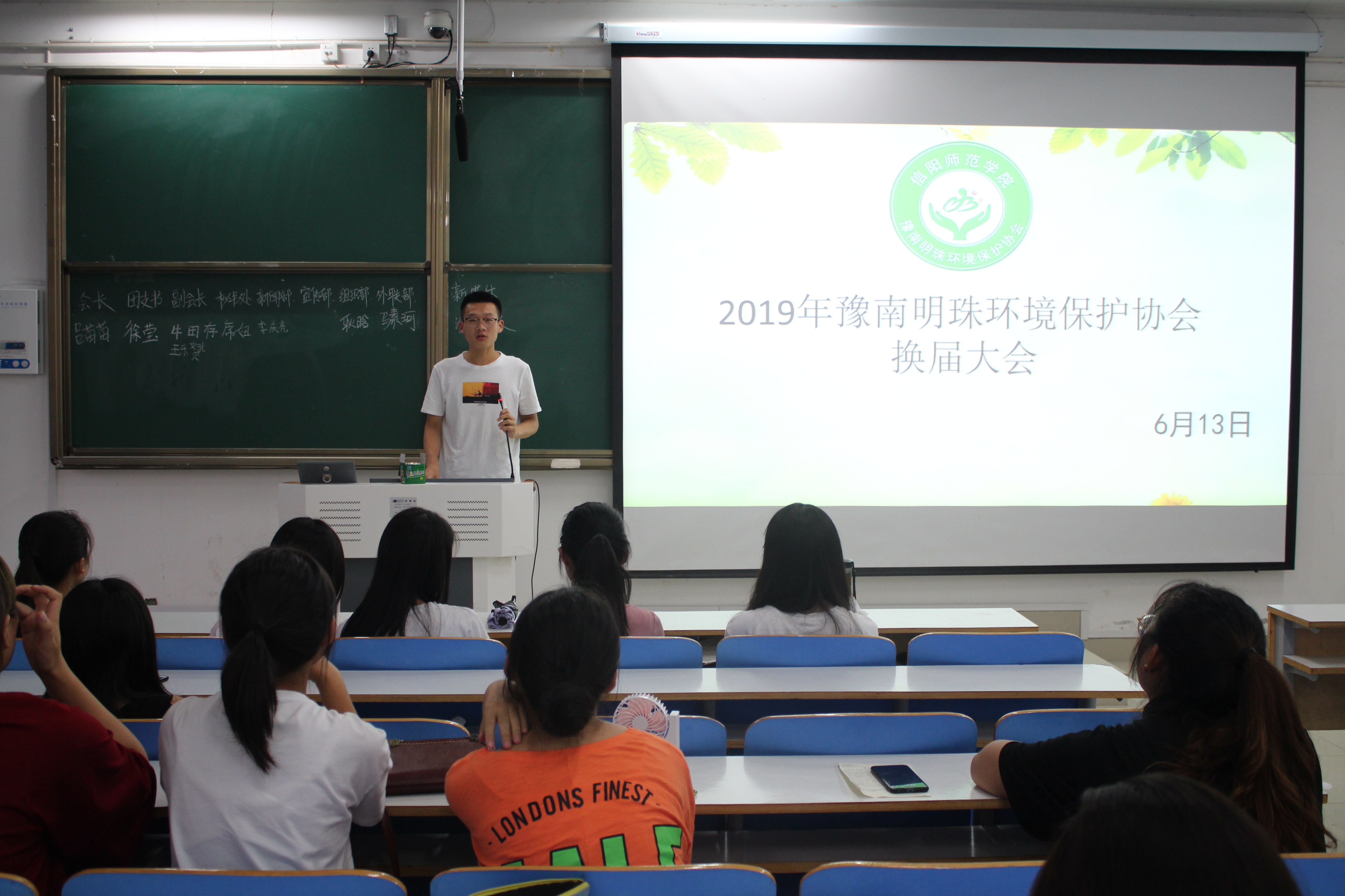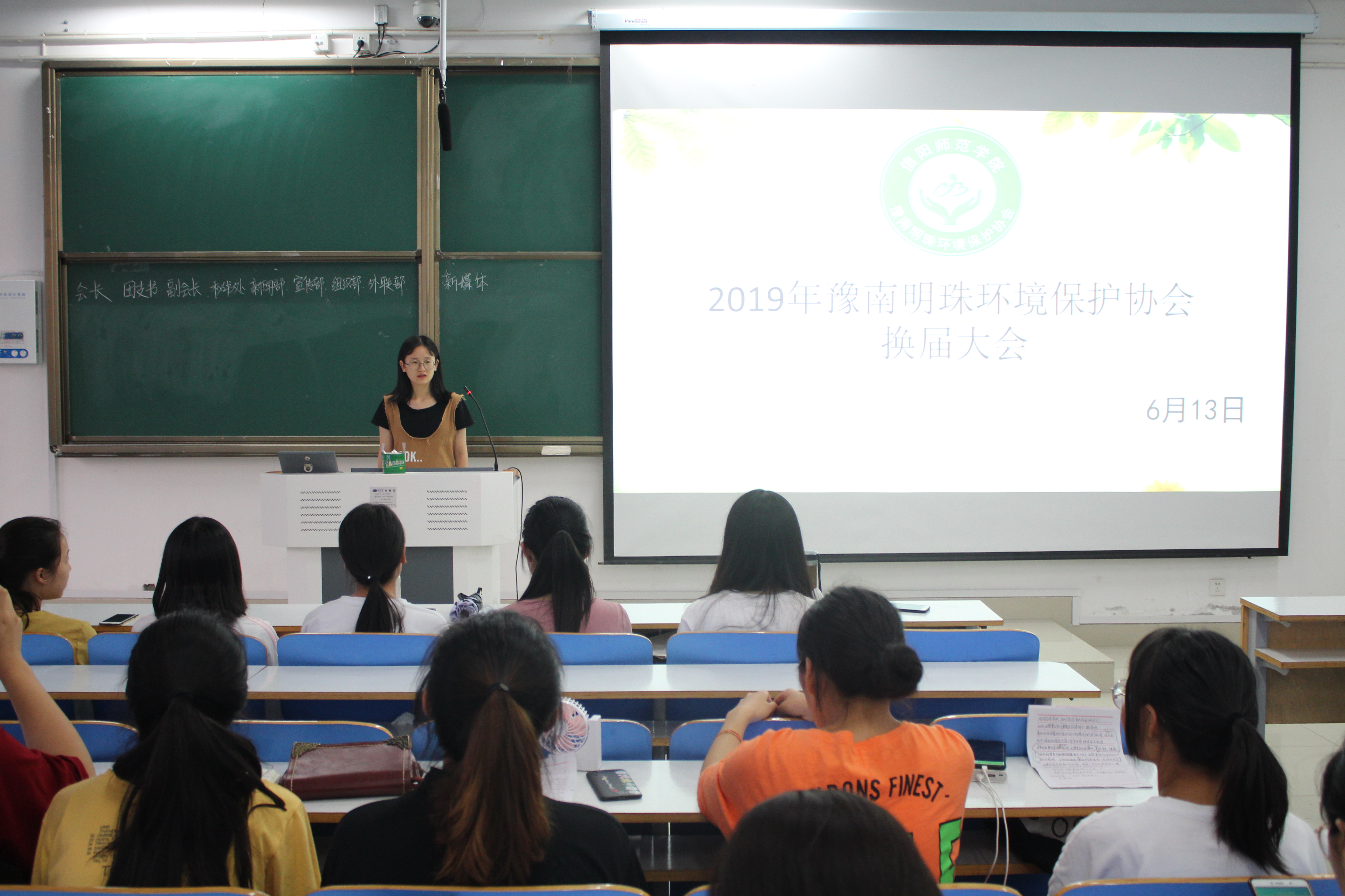 6月13日晚,豫南明珠环境保护协会在社科楼516教室顺利举行2018-2019学年社团换届竞选大会。2138CC太阳集团分团委学生会副主席高蓉、社长丁素艳、团支书郑梦丹及18级全体成员共同参加了此次全会。会议由丁素艳主持。