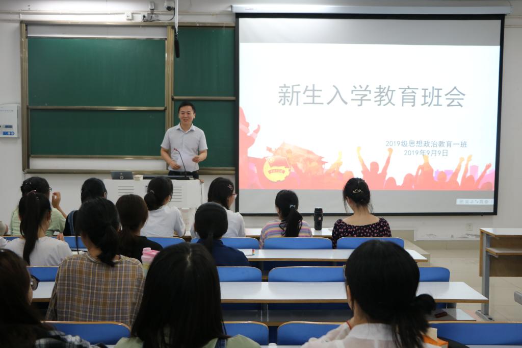 9月9日晚,2138CC太阳集团在社科楼515、516教室顺利开展新生入学教育班会。团委书记曹栋、辅导员陶青青以及2019级全体新生共同参加了此次班会。班会由班级负责人王文芳、王雅纯、曲新宇和艾子元主持。