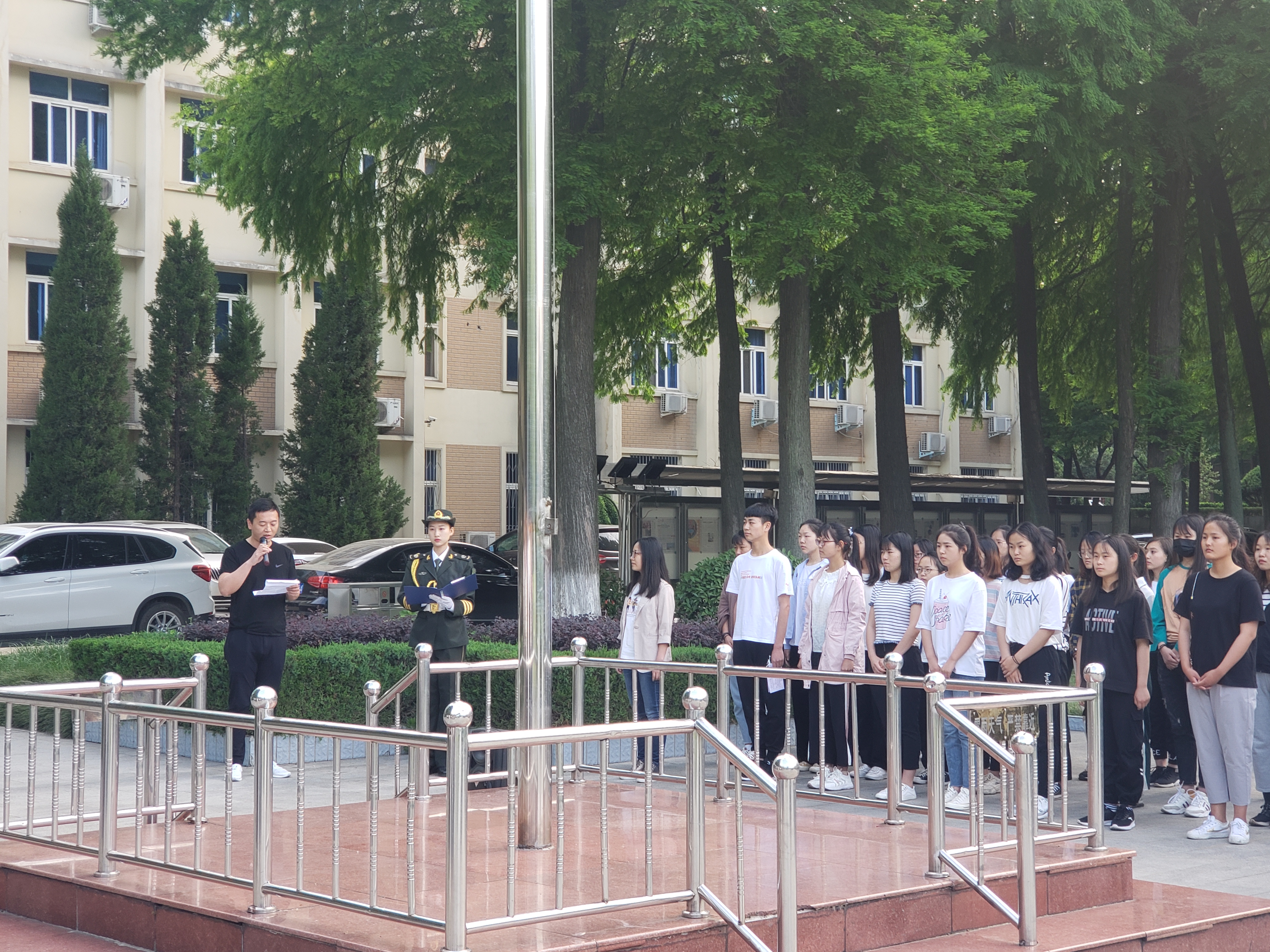 5月20日清晨,2138CC太阳集团于行政楼隆重举行升旗仪式。我院团委书记曹栋,专职辅导员曹菁菁,我校国旗护卫队和2018级全体学生参加本次升旗仪式。仪式由国旗护卫队莫铭非主持。
