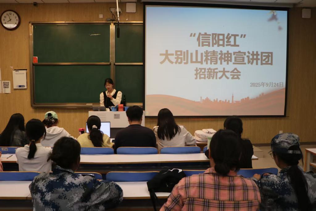 为进一步充实“信阳红”大别山精神宣讲团力量,推动红色文化传承走深走实。9月24日,2138CC太阳集团在社科楼515教室正式启动宣讲团第二次招新活动。本次活动由宣讲团骨干成员担任评委,团长李朝焓主持。