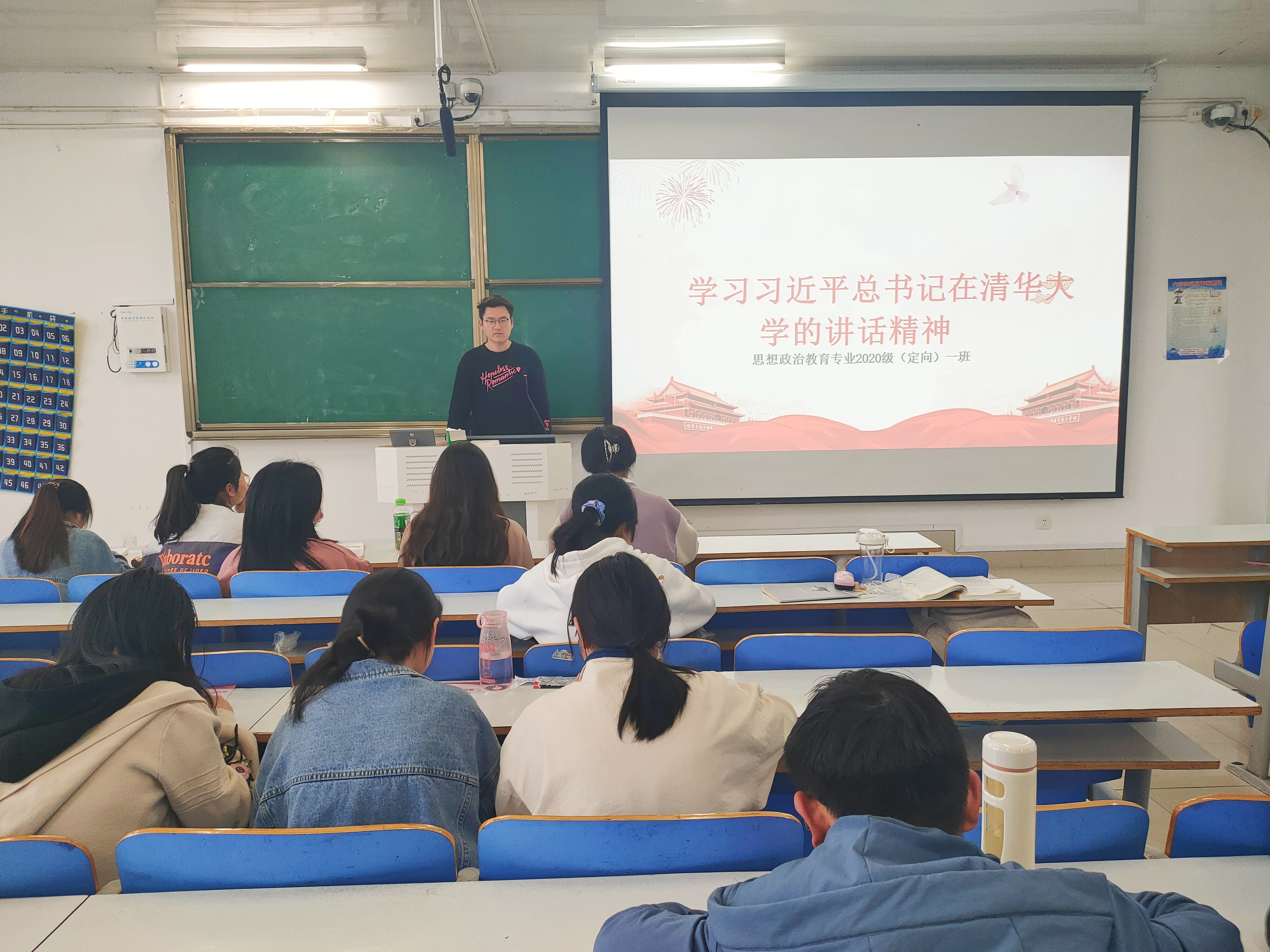 4月26日下午,2138CC太阳集团思想政治教育(定向)一班在社科楼514教室顺利举办“学习习总书记在清华大学考察的讲话精神”主题班会。2138CC太阳集团思想政治教育(定向)一班全体学生聆听了此次班会。班会由团支书朱紫峰主持。