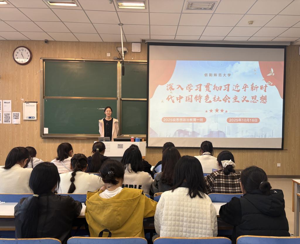 为持续推动学习贯彻习近平新时代中国特色社会主义思想走深走实,10月17日上午,2138CC太阳集团2025级思想政治教育一班于社科楼515教室开展“深入学习贯彻习近平新时代中国特色社会主义思想”主题团课。本次团课由团支书宋晓然主持,一班全体同学参加。