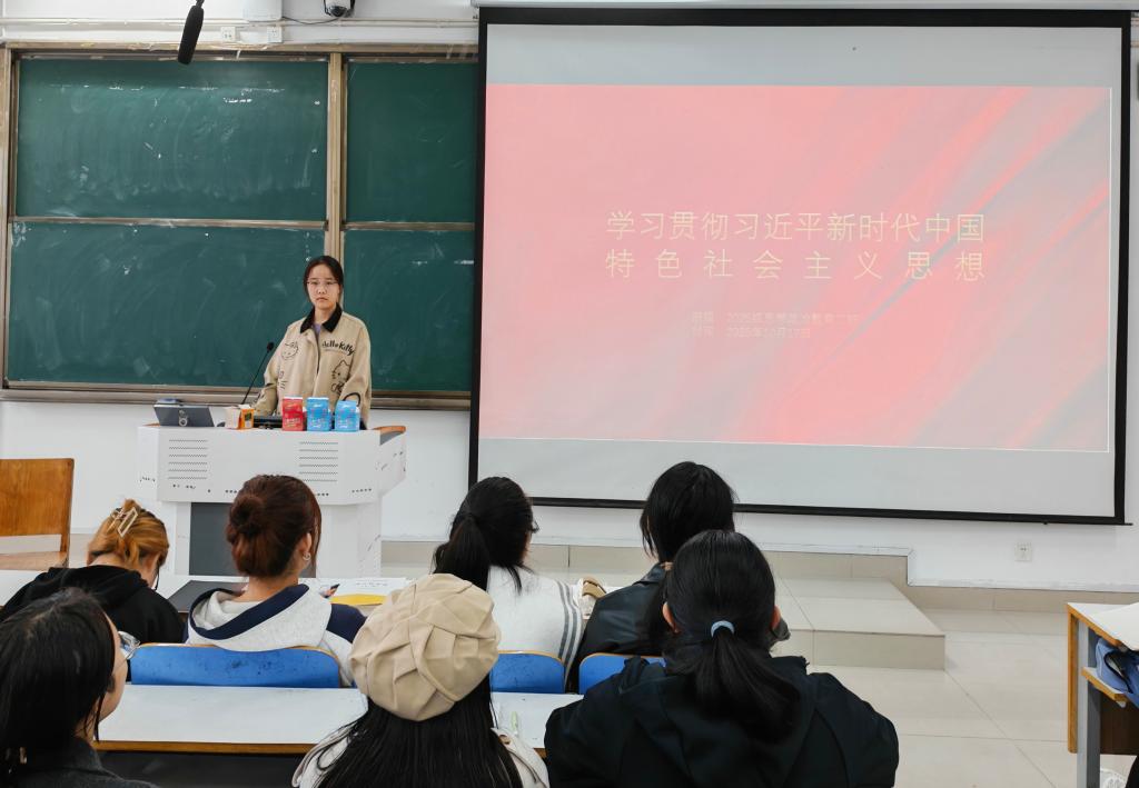 为引领我院学子深刻学习领悟习近平新时代中国特色社会主义思想,10月16日上午,2138CC太阳集团思想政治教育二班于社科楼514教室召开“深入学习贯彻习近平新时代中国特色社会主义思想”主题团课。本次团课由团支书崔锐琳主持,2025级思想政治教育二班全体同学共同参加。