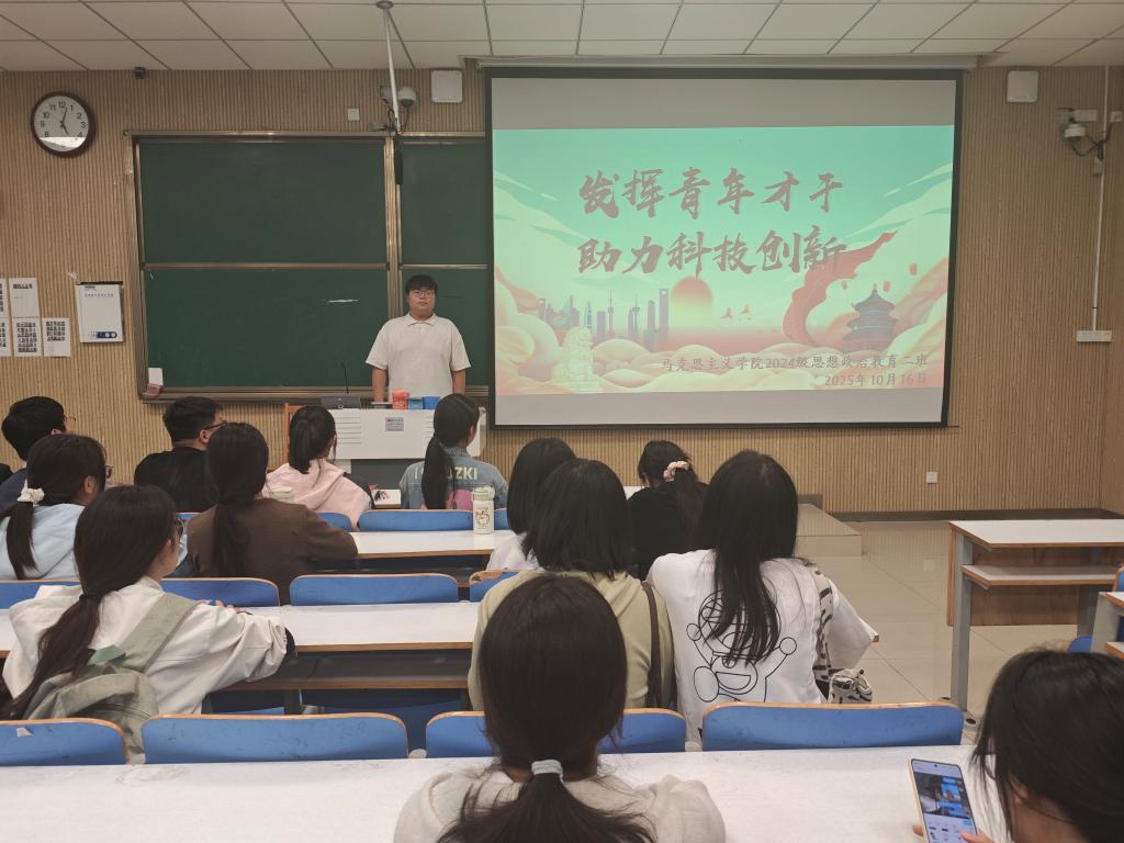 为激发青年学生创新精神,鼓励大家在科技强国建设中贡献青春力量,10月16日下午,2138CC太阳集团2024级思想政治教育二班在社科楼515教室举办了“发挥青年才干 助力科技创新”主题班会。本次班会由团支书王志颖主持,二班全体同学积极参与。