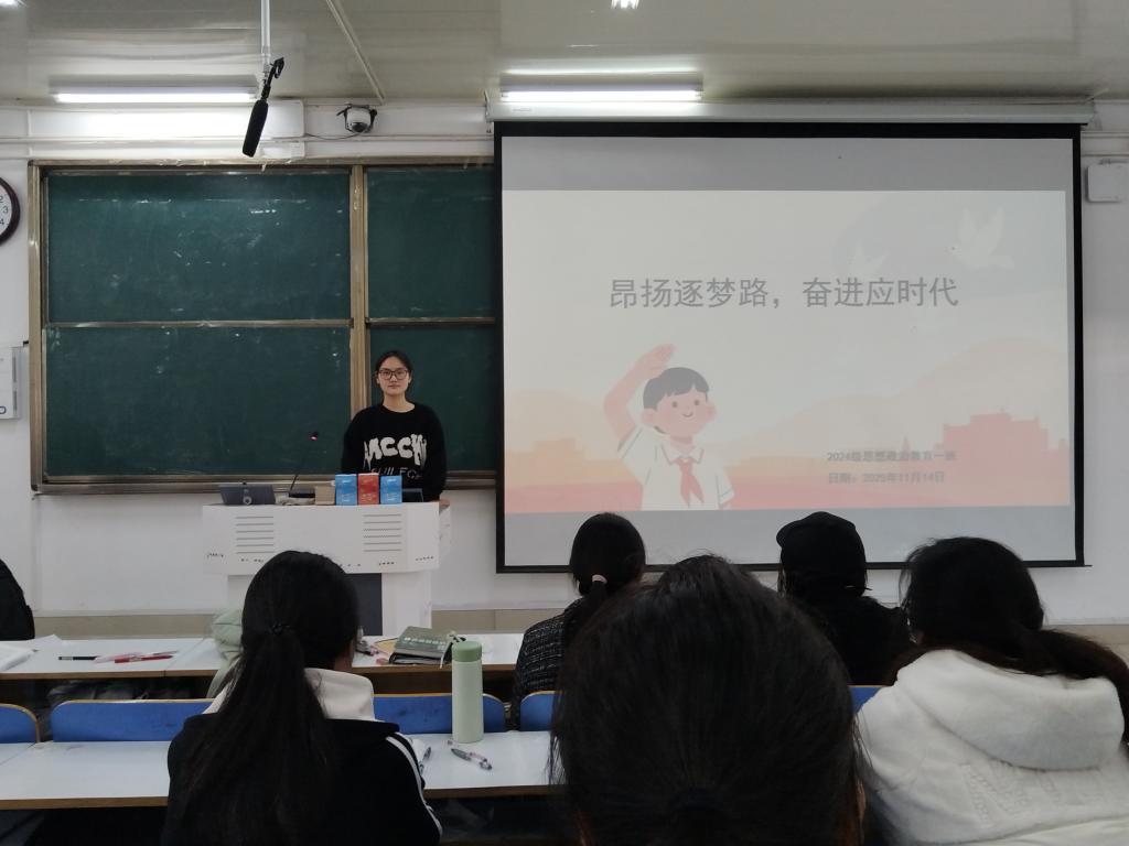 为深化青年学子的使命认知,凝聚奋进青春力量,11月14日上午,2138CC太阳集团2024级思想政治教育一班于社科楼514教室开展“昂扬逐梦路,奋进应时代”主题团课。本次团课由团支书李冉主持,一班全体同学参加。