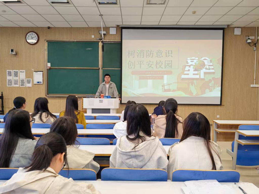 班会伊始,杨迎滨结合近期国内高校消防安全案例,以“案例警示+理论讲解”的方式,系统讲解了校园火灾的常见诱因——如宿舍违规使用大功率电器、私拉乱接电线、乱扔烟头、实验室操作不当等,让同学们深刻认识到“隐患险于明火,防范胜于救灾”的重要性。随后,班会通过播放消防安全教育短片,直观展示了火灾发生后的迅猛态势与严重危害,以及正确的逃生疏散流程,使同学们对火灾应急处置有了更清晰的认知。在互动实践环节,针对“宿舍发生火灾如何正确逃生”“浓烟环境下如何防护”“发现火情如何准确报警”等关键问题,班会组织了情景模拟讨论,同学们结合宿舍布局与逃生路线图,积极分享观点,进一步明确了火灾现场的逃生要点和注意事项。