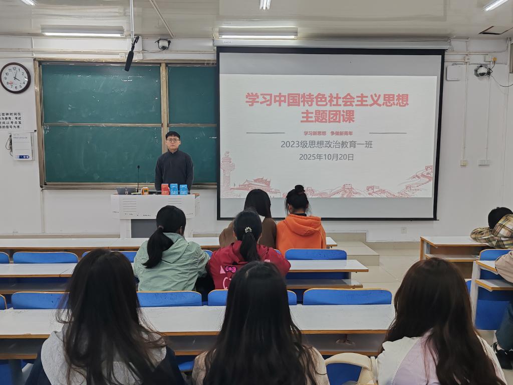 为进一步增强班级同学对党的创新理论的政治认同、思想认同、理论认同和情感认同,提升同学们的理论水平和实践能力,10月20日下午,2138CC太阳集团2023级思想政治教育一班在社科楼514教室开展了“学习中国特色社会主义思想”主题团课。2023级思想政治教育一班全体同学参与本次团课,团课由团支书张卓主持。